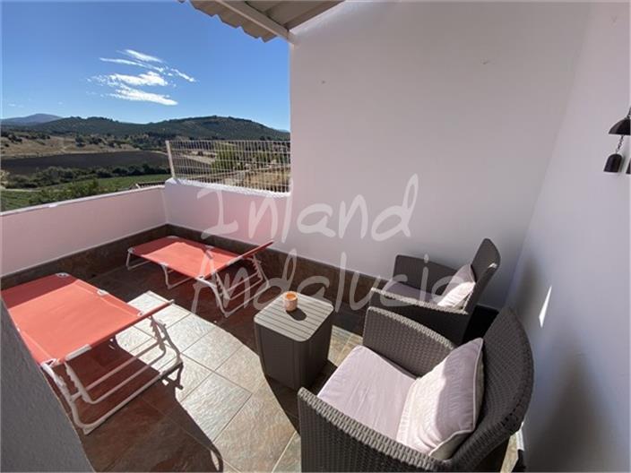 Description: This well presented 2 bedroom semi-detached Townhouse is situated in the charming and lively village of Mures, just a short drive to the bustling city of Alcala la Real in the south of Jaen province in Andalucia, Spain. Located on a wide level street with on road parking right outside, you enter the property into a bright and spacious lounge with a feature fireplace and to the rear is the fitted kitchen. Also off the lounge is a tiled utility / laundry area that leads to a ground floor, fully tiled bathroom. From the utility area quality stairs take you to the first floor where you have a bright large twin bedroom, a smaller bedroom, currently used as another sitting room with a storage space and that has access out onto a sun terrace with wonderful far-reaching countryside views. An ideal holiday home or as an investment rental property.