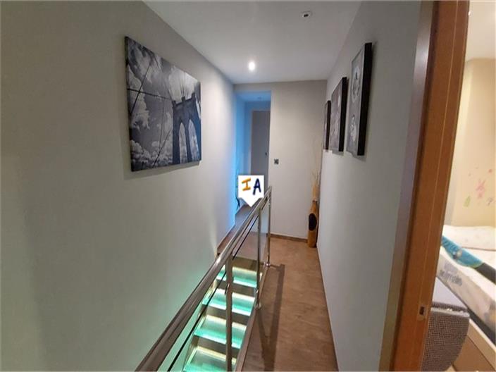 Description: This Quality, Renovated 6 Bedroom, 2 Bathroom townhouse is situated in the popular town of Castillo de Locubin, close to the historical city of Alcala la Real in the south of the province of Jaen in Andalucia, Spain. Being sold part furnished with air conditioning the 142m2 build townhouse is ready to move into. You enter the property into a hallway that leads to a spacious lounge with a formal dining area then into an utility space, a fully tiled modern shower room and a good size fitted kitchen diner. A modern glass staircase takes you up to the first floor landing from where you have a master double bedroom with fitted wardrobes and air conditioning, another modern shower room and 2 further bedrooms. From this level a staircase leads to the second floor enclosed terrace with views over the town to the mountains beyond and a corridor that takes you to 3 additional bedrooms.