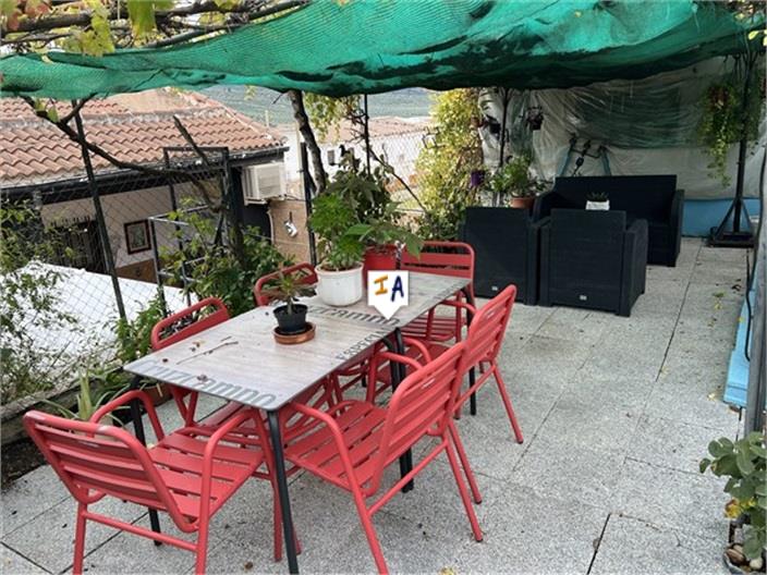 Description: This quality renovated 5 bedroom 2 bathroom property is situated in popular Castillo de Locubin, close to the historical city of Alcala la real in the south of Jaen province in Andalucia, Spain Located on a quiet wide street with on road parking right outside you enter the semi detached 310m2 build townhouse into a bright hallway with an open plan lounge, kitchen diner to the right. Off the lounge is a ground floor shower room, 2 storage spaces and 2 bedrooms. the hallway continues to quality stairs taking you to the first floor where you have a formal dining room and another lounge. Also a corridor leads first to a fitted kitchen off which is an utility room then a spacious shower room, a bedroom, a dressing room, a bright double bedroom, a master bedroom with a seating area and a passageway that leads out into a private tiled patio with space for alfresco dining. An outside staircase takes you up to a fenced terrace and garden spaces which includes an above ground pool plus a covered seating and dining area.