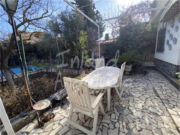 Description: This detached 3 bedroom chalet style villa with a pool is situated in the sought after area of Otura in the Granada province of Andalucia, Spain. Located on a generous 711m2 corner plot within the urbanization of Suspiro del Moro, the 184m2 build, easy living, one level villa comes with a garage, swimming pool, patio, spacious gardens and wonderful Sierra Nevada mountain views. With pedestrian and vehicle access via metal gates, you enter this substantial walled and fenced plot into a large front patio area with room for off road parking for a number of cars. You enter the villa from a side patio into a large open plan fitted kitchen, formal dining area and a spacious lounge with a feature fireplace. Off the lounge a corridor leads to a good size double bedroom with an ensuite shower room, to the left. Also off the corridor is a fully tiled bathroom, another double bedroom and a bright twin bedroom that includes an office space. The extensive grounds include a covered barbecue and entertainment space with a patio area and canopy for alfresco dining, mature planting and paved walkways surround the property for easy maintenance. You have 3 separate garden areas with mature trees as well as that good size private swimming pool and a number of fountains throughout the gardens. On the left side of the property, double metal gates give access to your private garage which has steps that lead up to a sun terrace from where you have spectacular views of the snow capped Sierra Nevada mountains. A quality easy living chalet style property with pool, great outside spaces and Sierra Nevada views, ready to move into and enjoy.